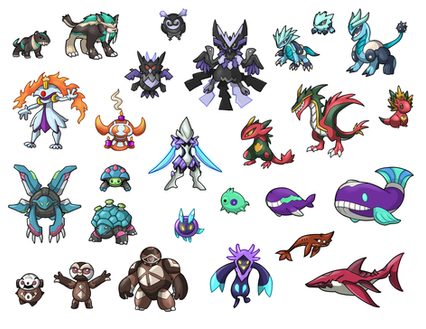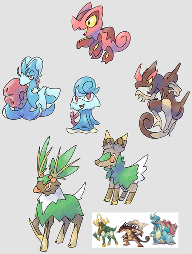 The designs are amazing but for the bottom row Iβm not going to lie the finals look almost like Megas, I can see them being stripped back for a more simpler design , but each PokΓ©mon is incredible I adore the squid and the fire ant !