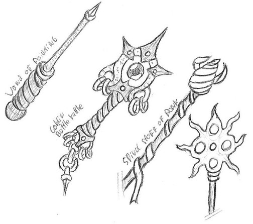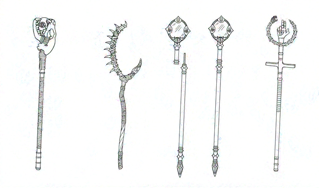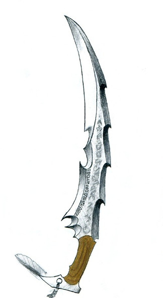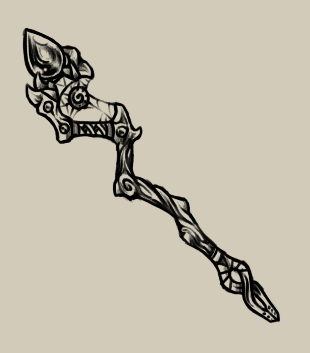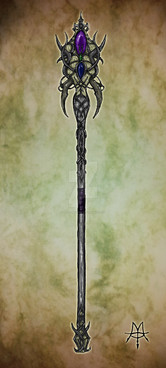 This staff/scythe is inspired by a faction of very evil elves in the game " warlord" and befits them well with its style. It appears, as some weapons do, to be inherently evilRelated content