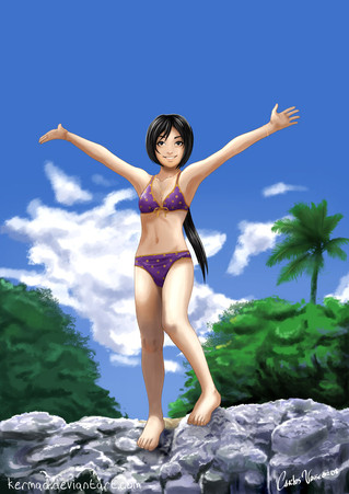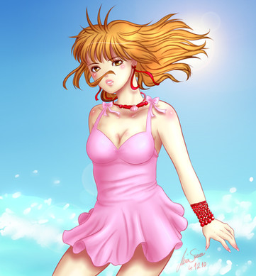 Impresionante el trabajo que has hecho con el color! Me gusto muchisimo el fondo y la anatomia de la chica, esta muy bien!