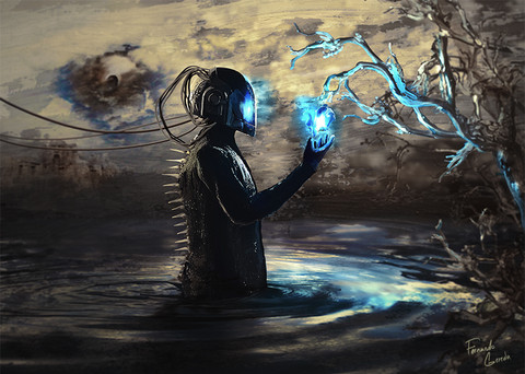 Hey, just saw your comment. The water effect around the head are several pictures of water splashes warped around it to fit, water is an interesting element to work with, I tried to make the hues and values as even as I could!ย