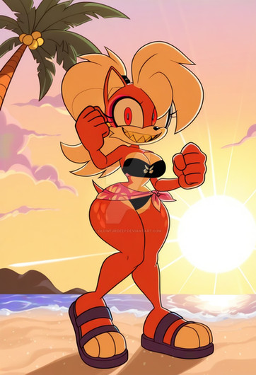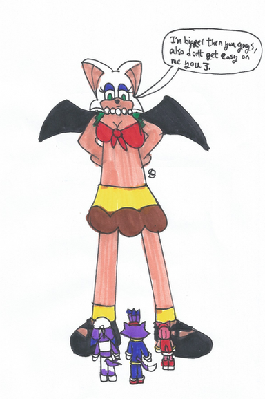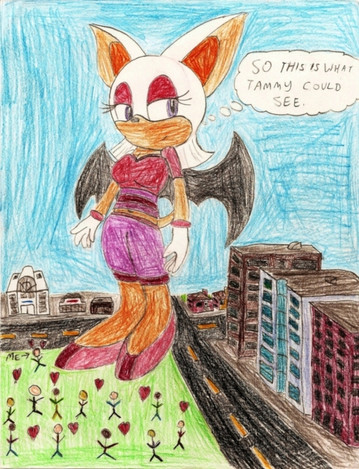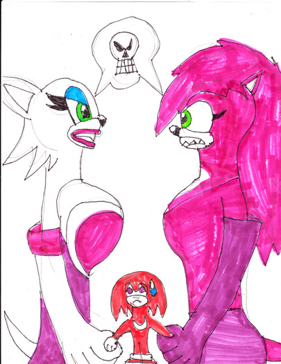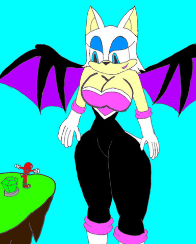 It started out as a drawing of Rouge inspired by a Sonic X 52 screen, but I eventually decided to put some setting in there. The sky and lightning effect were made with PhotoImpression 5, and the picture was darkned using MS Picture Manager.I also wanted to include Knux in the setting. Check him out at the bottom of the pic!!