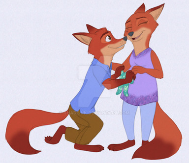As you can probably tell, I can never get enough of seeing Nick Wilde pregnant. Here we see him proudly holding his belly as he awaits the birth of his son or daughter. By the looks of it, he must be getting close.Another wonderful piece from FexToon.