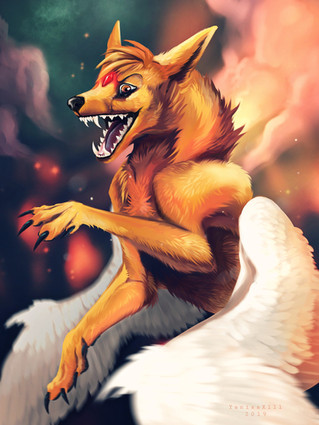 #battle #canines #digital #fantasy #field #fierce #flames #snarling #wolf #wolves #wolfflames #fire #gerrafox77 #growilng #arttrade #theeth