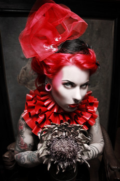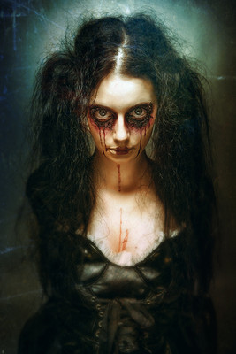 There is NOTHING unremarkable about this photo. The costuming, make-up, model, lighting, and concept are all magnificent! but that's not a surprise coming out of your studio my friend. another masterpiece for the wall. wow.
