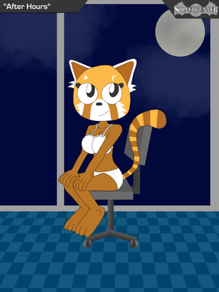 Its Retsuko in her room at night, waiting for the love of her life to join her ^^Final part of a triple series of pinups I drew of the best three Aggretsuko ladies.