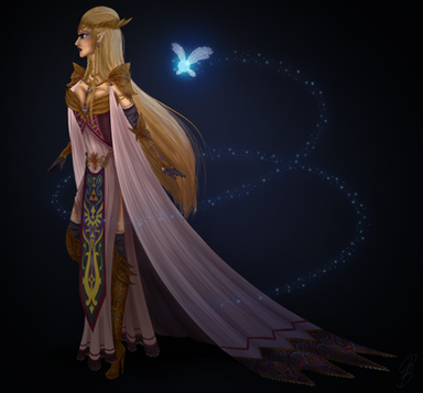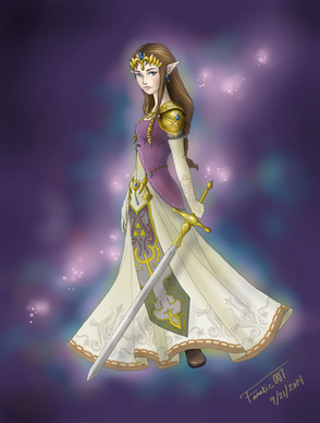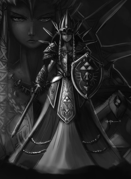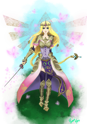 A fanart of Princess Zelda (TP version).I changed her design a little, give her an armour, a shield and.. tada ! It's a princess ready for battles !