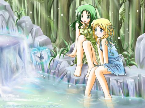 I LOVE this picture. Everything from the rocks to the water, to the folds on the girl's dress and the way she's sitting is completely natural, and incredibly pleasing to look at.Firstly, the colors.. I've been browsing at your gallery and this picture really shows fine improvement... From flat colors and uncomfortable lines, to a wonderful show in skill, plenty of colors and lovely lightsources along the way. While I see wings a bit too often in your gallery, I think this winged girl suits the picture very well. Everything around her really helps to create either a 'natural' or 'magical' feel, whichever you choose, and you chose the magical route. It's lovely. Wonderful job on the water, it's really a challenging thing to paint, but you managed to do it very well(great job on the fish as well). I LOVE the forest, how the trees simply fade away as they get farther back.. And wonderful job on the girl. The wrinkles in her dress... are drawn so very well! they help define her body, the way she's sitting, and the bagginess of her dress. I also love the pink shading on her wings, her legs, and on her hair. Her hair looks so soft, too!