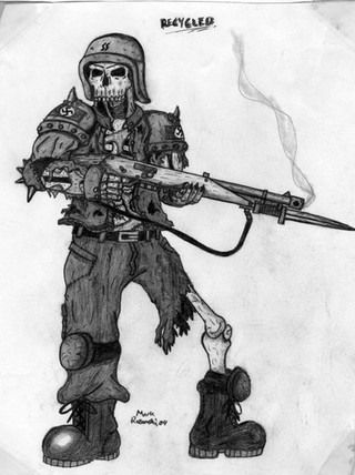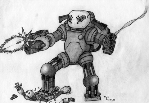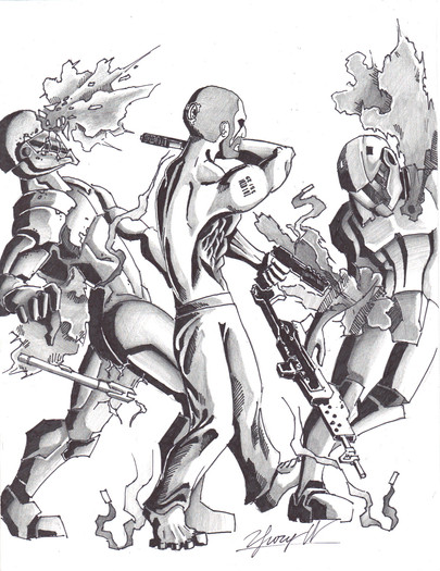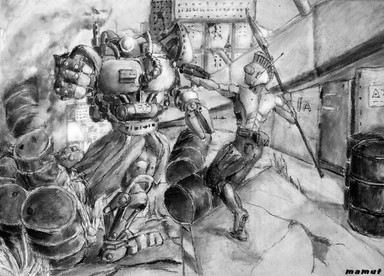 *Ancient*A drawing made in direct contrast to the APU crushing a robot, this one depicts the opposite end of the spectrum with a robot standing over a defeated (by that I mean hyper-dead lol) human soldier. Based on the Animatrix's Second Renaissance.