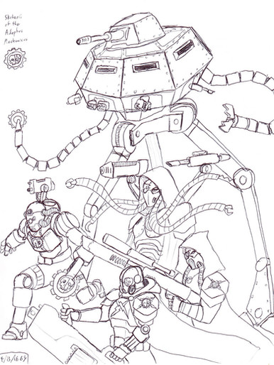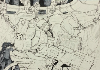 *Ancient*Rough sketch of a sentinel pulling an APU's pilot out of his harness, none too gently I may add, looks like this poor sod isn't getting plugged into the Matrix when this is done, lol. Based on the Animatrix's Second Renaissance.