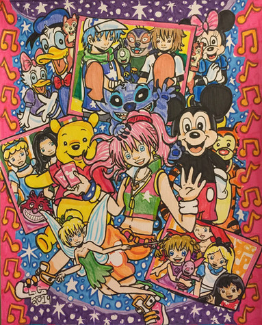I see little bit of Lio & Stitch cast in the piece, my father just re-watched that while back. I loved the series for it.
