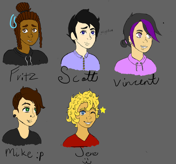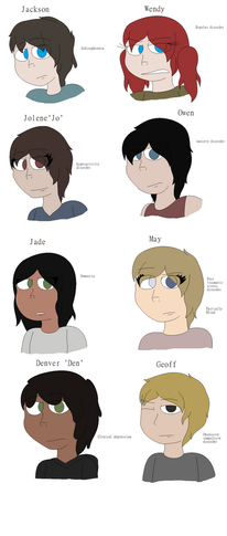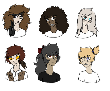 The designs for these guys as shown belong to - pokefan425 though I did kinda tinker with them a bit (made some skin colors a bit darker, a couple hair colors a bit darker, and I gave Mr. Smiley freckles bc freckles i swear)