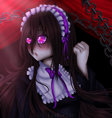 nice work on the expression and psoe ; w ; she looks like a sweetheart yet the whole pic has a horror-ish feel in it pwp