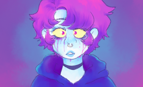#blueskin #demon #glowingeyes #greeneyes #greenhair #malecharacter #originalcharacter #simplebackground #colourpractice #practicedrawing #maleoc #glowing_effect