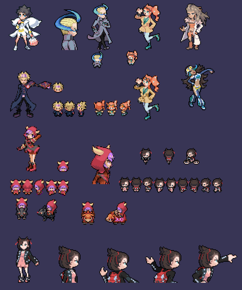 Btw this is prototype version with incorrect overworlds, please use: ghost-missingno.deviantart.com… or ghost-missingno.deviantart.com… . The third variant comes from her DA before she shutted it down , the others were my requests from /vp/ board on 4chan. It was hella long time ago, in 2012... First Sprites of Heroine Blue ever created.