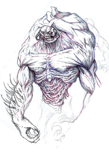 But after reading through, I actually got to thinking that Arlen would end up looking a bit like a big tatooed up bald version of the Hero from the first Fable. And the Rock Demon sorta seemed like it'd look like one of the starter Spectrobes you get on that game.