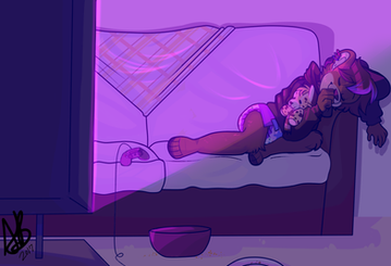 Night time, padding, snacks, sippy cups, video games, plushie companion...That's how you live life!! X3