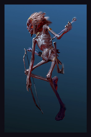 At first I thought this was a bowman riding on top of a mounted creature. It still sorta suggests to me the form of two creatures spliced together, with the torso of one at the neck of the other. Fabulously creative and weird, a little Guillermo Del Toro-esque, almost. Well done!