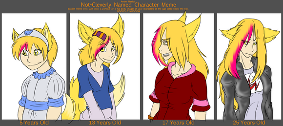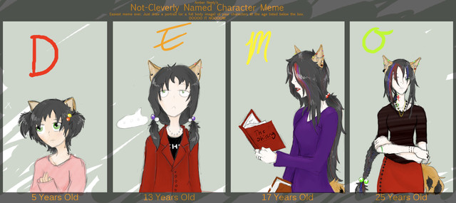 13 años -Liberacion de su verdadero yo-: un tiempo despues de su encuentro con su padre y su hermano Ray, sus gustos al fin pudieron florecer con un desenfreno acelerado, que ya en su adolescencia pudo desarrollar con mas control, aunque su amor a la mecanica fue algo irreversible, pero fue comenzando por dejarse crecer el cabello y dejarlo crecer, mas o menos en la epoca que se volvio vampireza, y su gusto por las bromas fue donde si quebro el vaso xD