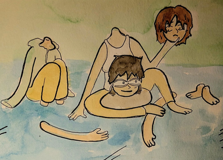 The next evening, Becky pulled into the driveway. I could hear her walk in, and heard the sound of wheels rolling on the wooden floor. I saw her, young, maybe 25, blue hair, in a shirt with her sleeves hanging. Her shorts ended at her hips. She was completely devoid of limbs, like me. Only difference was that she never had any limbs to miss to begin with. She was beautiful, with an amazing body, for what she had. She was told about me, and she wanted to help me to accept myself, and to teach me how to live in this state. Her name was Anne.