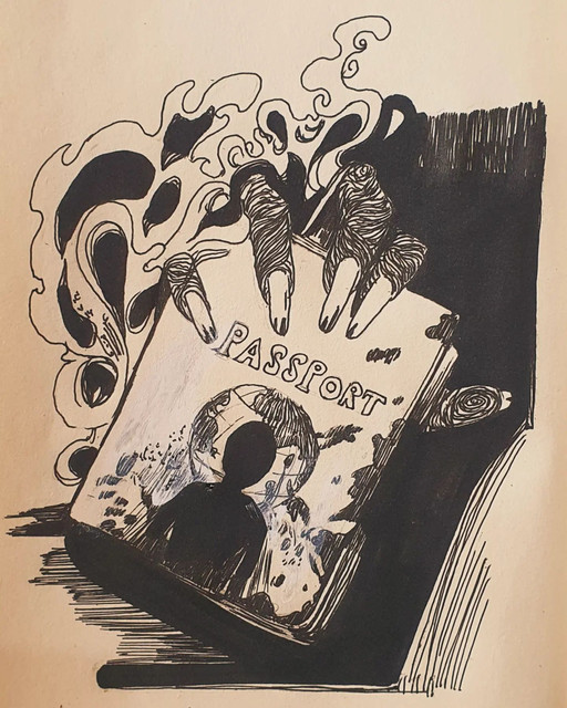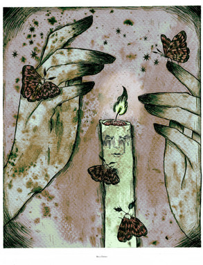 This is a picture inspired by Silent Hill movie.Traditional mixed media, A4.