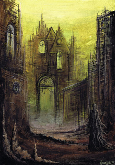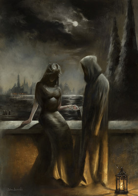 Inspired by the stories of R. Chambers about King in Yellow.Comission work. Oils on wood, 40x50 cm.