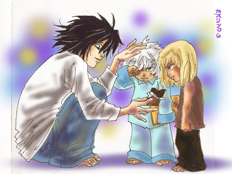 aww.. L and ryuk look so innocent and adorable, [although probably not innocent >_> ]