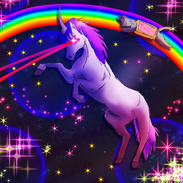 Robot Unicorn and Nyan doulbe the rainbow? double the trouble