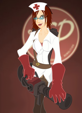 Why did you have to change their looks so much? I really don't understand why all of them practically have double D's, and really the Medic's and the Spy's clothing really seems inconvenient for battle due to them both wearing heels and having long dresses that could catch. And i don't remember the Medic having a needle in the game ether.