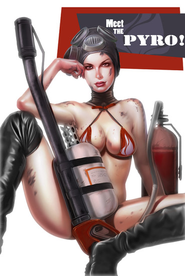 The whole idea behind their character design was to make them instantly recogniseable, just by their silhouette. Herre, even Pyro isn't safe from this uniform, idealistic look you've plastered onto them. Even their faces are all the same. Speaking of Pyro, why the hell is she blue?! She looks like a deep-sea diver. And that's just ironic.