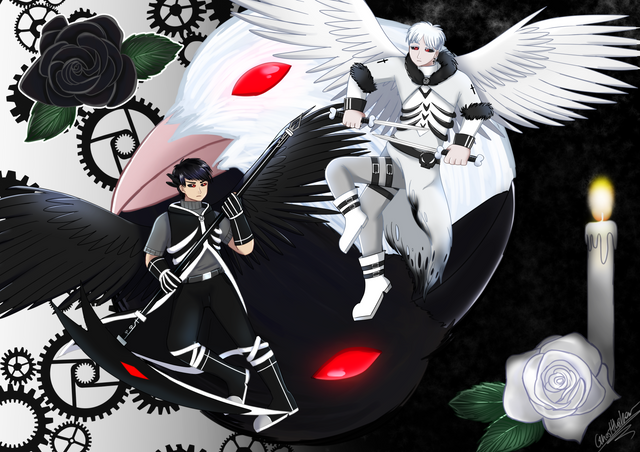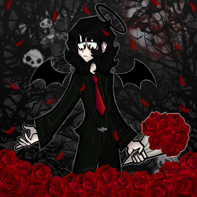 #digitalart #animeart #animemale #blackroses #crow #dark #deathangel #feather #flowers #mangaboy #ocs #originalcharacterart #originalcharacters #reaper #wingedcharacter #ocartists