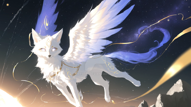 #fox #sky #fluffy #digitalart #anime #angel #magic #fantasyart #wallpaper #cat #adoptable #animal #blue #cartoon #exclusive #fantasy #portrait #exclusiveadoptable #exclusiveadopt