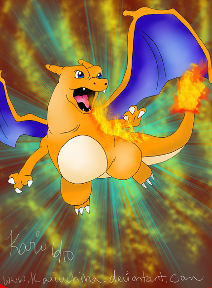 As the title states, just a random drawing of Charizard. Mainly this was just a slump breaker... I'm supposed to be drawing a humour pic of Light from Death note, but I couldn't find the motivation, so I did this instead!Disclaimer: Charizard and PokΓ©mon Copyright of Satoshi Tajiri