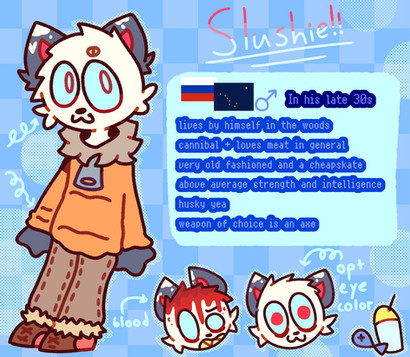 Slushie is mostly seen sad, they are rarely happy. Trying to cheer them up is a difficult task. (I don't really have much for them cause, well, they're sad 24/7)