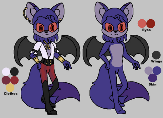Uhh, actually he isn't a bat. He was originally a hedgehog, then I decided I'd give him a long tail, then I wanted him to be somewhat supernatural and he got the wings, then this recent look I decided I'd throw in a bunch of traits I like at the wall and see what sticks, lmao. As of right now I just call him a thing. xD Species are overrated amirite?