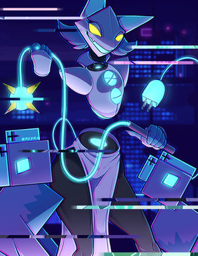 #cat #dark #fanart #female #glow #noise #robot #cartoonstyle #gamefanart #missfortune #monstergirl #skullgirls #robofortune