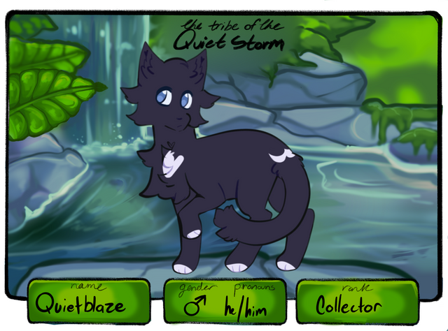 Character Bio:Sootwing || ID# 2519 || AMAB || The quiet storm || wetlands || Litter 6/6 || rank: || Litter link
