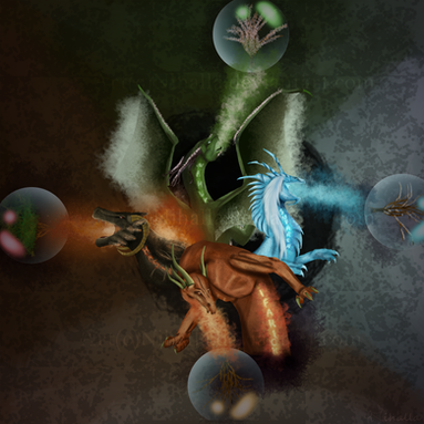 I am always impressed by the way you draw fire and dragons. The shape of this one though really intrigues me though. It's like a DNA strand and they it combines with the thunder really is cool. I think alot of sci-fi vs. fantasy when I see this.