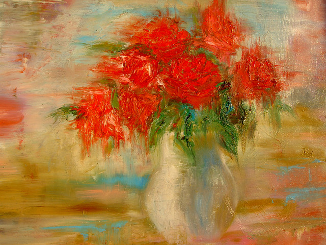 The flowers being all crowded make it see, like their bursting forth from the canvas toward the viewer. Very cool.