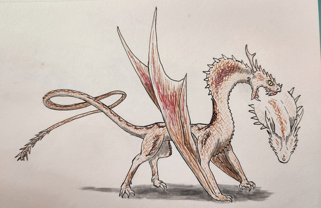 They are the largest species of the common Drakes which have a striking crimson red scale-skin, black horns, crimson eyes and a powerful fire breath, similar to that of a Red Dragon or Burning dragon, They usually migrate from the mountains to the volcanic Lands and from these to the prairies to hunt and plunder the herds of the farmers of the villages.Type: Animal/Aerial/Beast