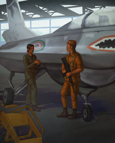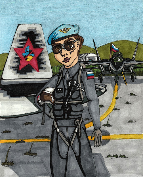 Anyway, fighter is F-15 so it belongs to American chick obviously, Russian pilot with his helmet are totally alien here and so Chinese too.