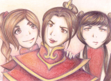 Azula with her team : Mai and Tylee from Avatar, the Last Airbender.I really like when Azula appears in the show, she is evil hehe ò__ó