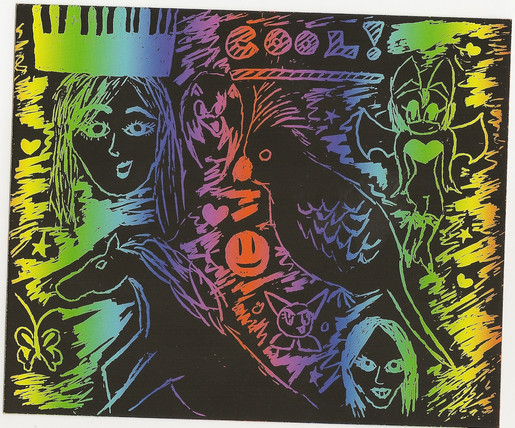 I promise something different soon! I drew this in drivers ed. class. It is sooooo boring! Anyway keep your eyes open for a really cool Silvaze pic inspired by Dreams of an Absolution. I got really passionate about that song for a while. I was very moved.Anyway, what do you think of GiGi's newest design?