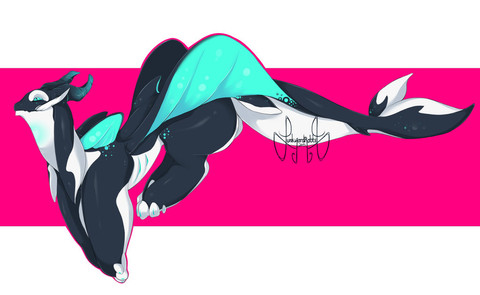 I made a dragon based on my stuffed orca Shampoo. I've had my stuffed animal since I was like a baby. He was named Shamu like the orca, but I couldn't say Shamu as a kid so I called him Shampoo and it stuck.Species is a wip-