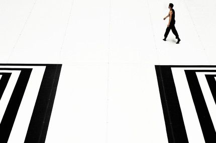 Very cool shot. I love the point of view! I was a bit iffy about the shadow on his face, but now I realize it's part of the composition... darkness, light, black, white... very cool