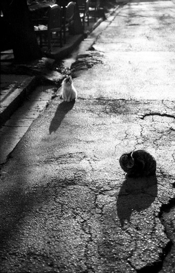 two cats soloed out in the dark night. alone with no food nor a home. their fait is at its end.