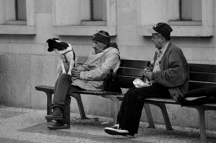 This is a very good job, i like the explanation below the picture and im not a big fan of reality shows but i would actually like to see a reality show about the things you said, homeless trying to get by and such. The picture is perfectly positioned almost unveliebable that the dog is really there and that these homeless guys are no actors, you really got the angle.