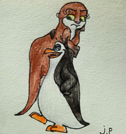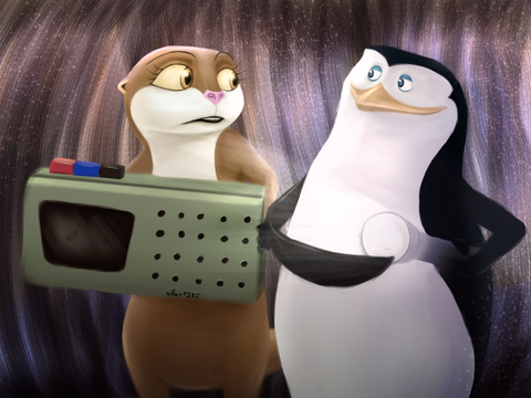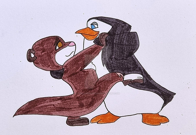I decided to redraw in my way a title drawing from episode "Otter Woman" from Penguins of Madagascar series here. Here's reference image from that episode which inspired me to draw such drawing:Β