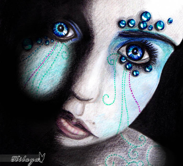 Me encanta, sigo manteniendome en que haces los labios y los ojos perfectos, con esos brillos tan mágicos. Me encantan las burbujitas brillantes y coloridas. Es como si estuviese bajo el agua pero sin estarlo (como en un lugar etéreo, no sé si me explico). Parece la portada de un libro/novela/película, por cierto xD