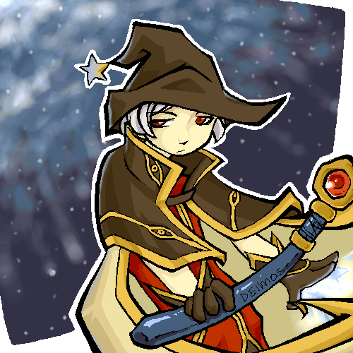 (I drew this almost three years ago, but I'm oddly proud of it for some reason.)Eryn had a spray of sparks fly into his eyes at a young age, blinding him. I normally draw him with an ornamental blindfold on, but in this case I wanted to show some of his face.
