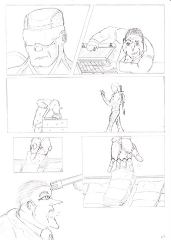 Concept and layout, background, drawing and inking of his characters Grey (2nd from left) and Joseph (far right).